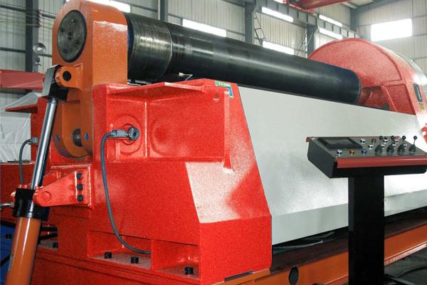卷板機是對板料進(jìn)行連續點(diǎn)彎曲的塑形機床。卷板機上輥在兩下輥中央對稱(chēng)位置通過(guò)液壓缸內的液壓油作用于活塞作垂直升降運動(dòng),通過(guò)主減速機的末級齒輪帶動(dòng)兩下輥齒輪嚙合作旋轉運動(dòng),為卷制板材提供扭矩。 三輥對稱(chēng)卷板機主要特點(diǎn):該機上輥可以垂直升降,垂直升降的液壓傳動(dòng),通過(guò)液壓缸內的液壓油作用活塞桿而獲得;下輥作旋轉驅動(dòng),通過(guò)減速機輸出齒輪嚙合,為卷板提供扭矩,下輥下部有托輥,并可調節。上輥呈鼓形狀,提高制品的直線(xiàn)度,適用于超長(cháng)規格各種截面形狀罐。